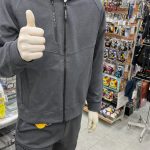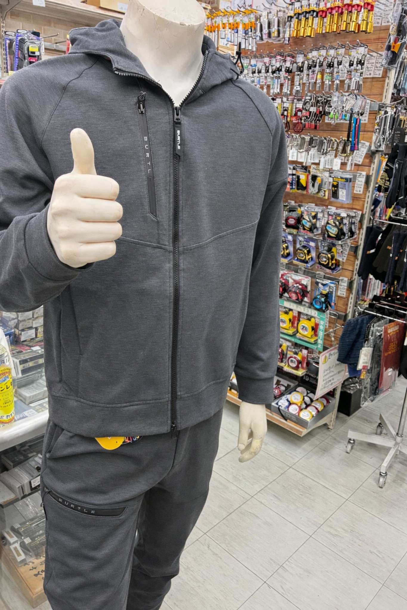 しています。上下とも落ち着いたチャコールグレーなので、単品使いでもコーディネートしやすいのもポイントです。