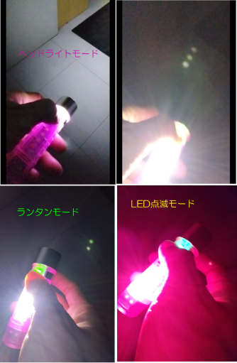 ヘッドライトモード、ランタンモード、SOS赤点滅モードの3種類