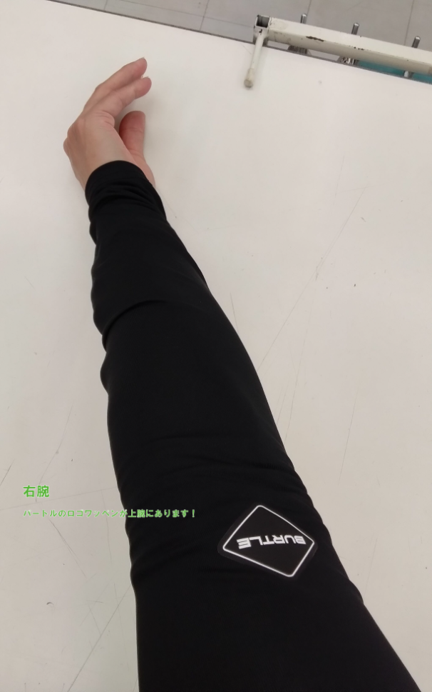 ポリウレタン混の素材で高い伸縮性。腕にしっかりフィットしてズレにくい。