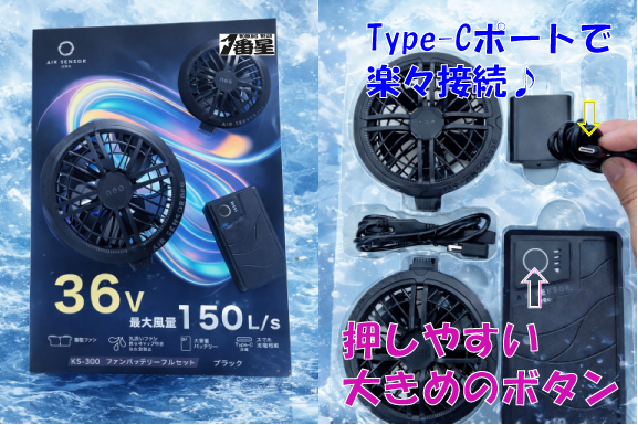 - 強力な風量で、炎天下や屋外作業でもしっかり冷却